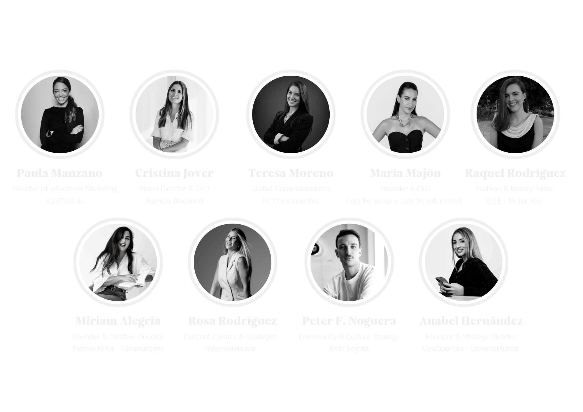 El jurado está compuesto por referentes del sector del marketing, la comunicación, la estrategia digital y la creación de contenido, profesionales con trayectorias consolidadas y una visión actual del ecosistema creativo y mediático. Cada miembro aporta una perspectiva complementaria desde su ámbito de especialización, lo que permite evaluar las candidaturas de forma global y equilibrada, teniendo en cuenta no solo su alcance, sino también su impacto real, la solidez estratégica, la capacidad de generar conversación y su contribución al valor social y cultural.